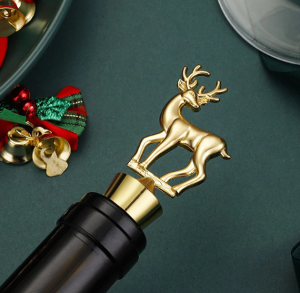 Elegantni božićni čepovi za vino u zlatnoj boji donose luksuzan i svečan izgled svakoj boci.