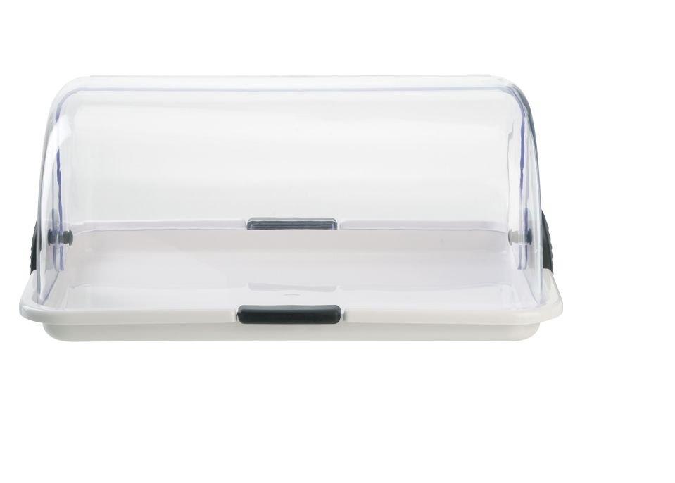 Prozirni poklopac omogućuje jasan prikaz sadržaja, dok štiti hranu od vanjskih utjecaja. Otvaranje s obje strane olakšava pristup gostima i osoblju.