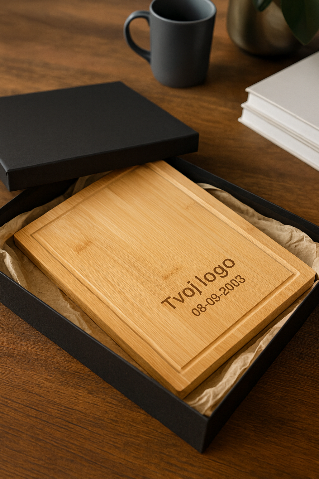 Na svaku dasku gravira se vaš logotip laserskom tehnologijom – precizno, trajno i u skladu s prirodnim tonom drveta.