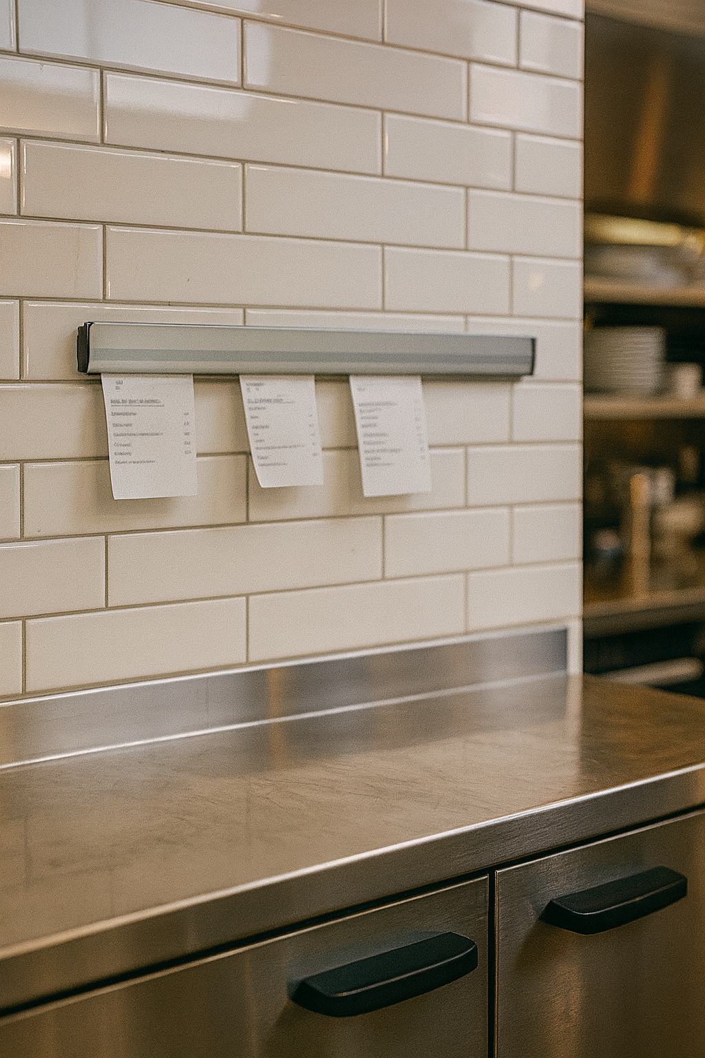 Organizacijska šina duljine 45 cm (Barra Ordinazioni) talijanskog proizvođača Medri namijenjena je profesionalnim kuhinjama, restoranima i HoReCa objektima za organizaciju radne površine i ubrzavanje pripreme i servisa. Koristi se za postavljanje narudžbi, bonova, papirića ili check-lista, omogućujući jasan pregled i bolji workflow u kuhinji.