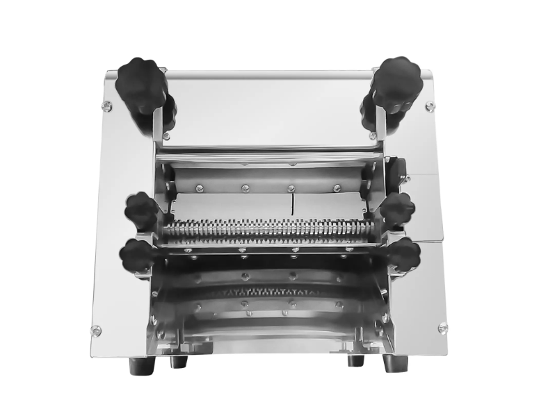 Profesionalni stroj za izradu svježe tjestenine izrađen od nehrđajućeg čelika, dizajniran za intenzivnu upotrebu u restoranima, pizzerijama i obiteljskim kuhinjama.