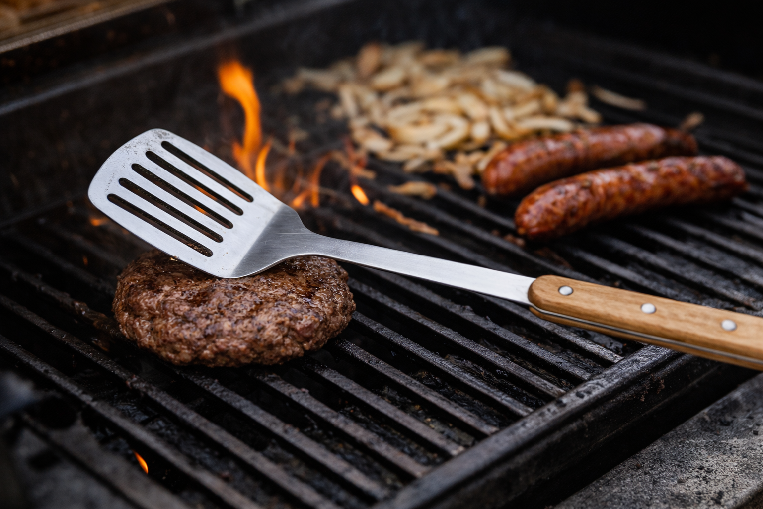 Drvena drška osigurava ugodan i siguran hvat te smanjuje prijenos topline tijekom rada. Zahvaljujući duljini od 37 cm, lopatica je praktična za rad na tavama, roštiljima i većim pločama za pečenje, što je čini izvrsnim izborom za restorane, kuhinje u ugostiteljstvu i kućne entuzijaste.
