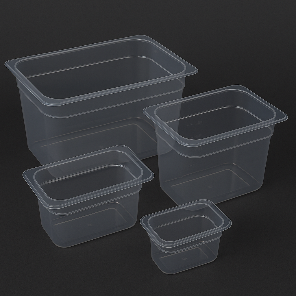 Profesionalna GN polipropilenska posuda izrađena od izdržljivog, prozirnog polipropilena. Sigurna za kontakt s hranom, pogodna za zamrzavanje i pranje u perilici posuđa.