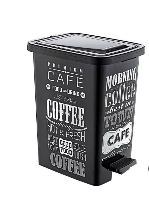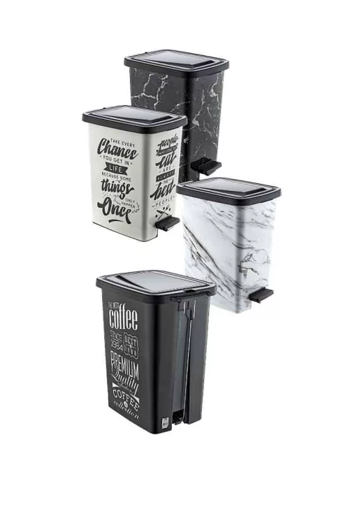Otvaranje na pedalu omogućuje korištenje bez dodira ruku, što doprinosi višoj razini higijene. Dekorativni print s modernim natpisima daje kanti poseban vizualni karakter, zbog čega nije potrebno skrivati je u ormarićima – može biti dio interijera.