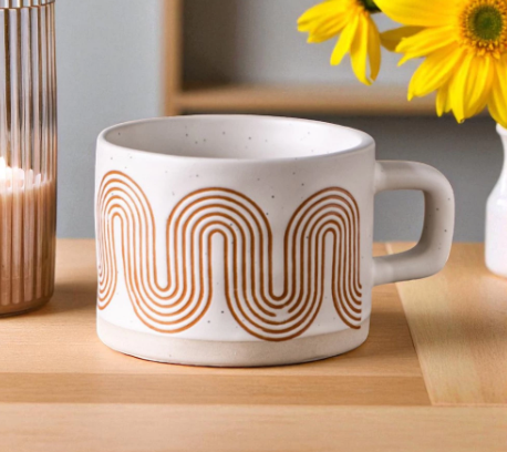 Mat završna obrada i udobna ručka čine je idealnom za jutarnju kavu, čaj ili kakao, dok njezin geometrijski uzorak unosi šarm u svaki kutak doma.