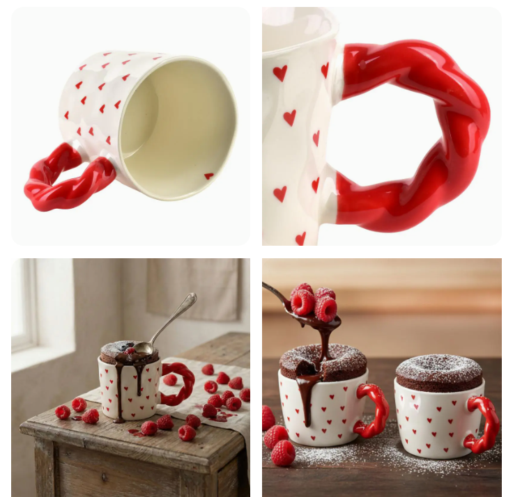 Kupid kubek od 300 ml unosi toplinu i emociju u svaku pauzu za kavu ili čaj. Klasična bijela keramika ukrašena sitnim crvenim srcima i efektna ručka u obliku isprepletenog srca čine ovu šalicu posebnim detaljem na stolu.