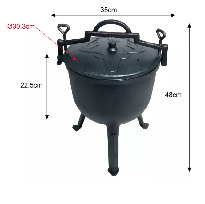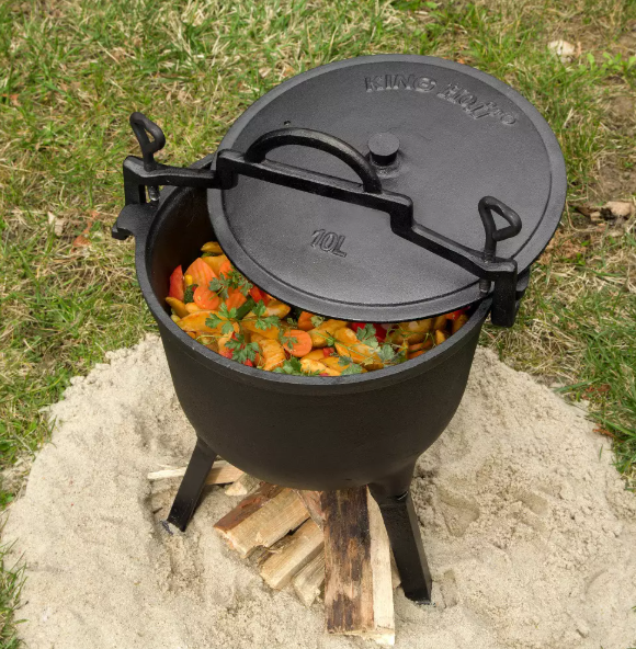 Stabilne noge omogućuju sigurno postavljanje iznad žara ili otvorene vatre, dok čvrsti poklopac pomaže zadržati vlagu i aromu tijekom kuhanja.