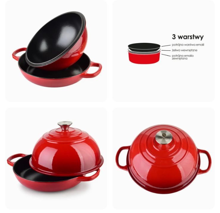 Profesionalni pekač za kruh izrađen od čvrstog lijevanog željeza s emajliranom površinom, savršen za pečenje domaćeg kruha, peciva i jela koja traže ravnomjernu raspodjelu topline.