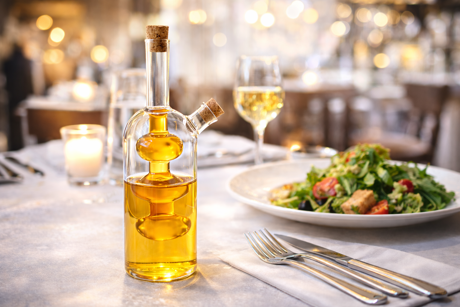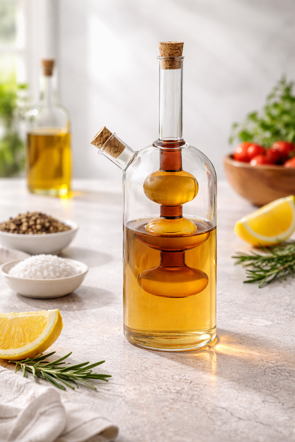 Ova staklena posuda za ulje i ocat elegantan je i funkcionalan dodatak svakoj kuhinji, restoranu ili apartmanu.