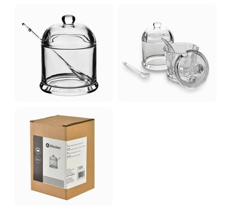 Kapacitet od 290 ml idealan je za posluživanje šećera uz kavu, čaj ili deserete, kako u kućnom okruženju tako i u kafićima, hotelima, restoranima i apartmanima. Poklopac ima praktičan otvor koji omogućuje korištenje žličice bez skidanja poklopca, čime se održava higijena i urednost stola.