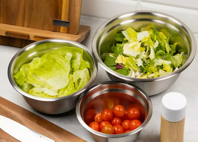 Posude se mogu slagati jedna u drugu, čime se štedi prostor u kuhinji, a tri različite zapremnine pružaju fleksibilnost za sve zadatke – od miješanja tijesta, pripreme salata i umaka, do posluživanja jela.