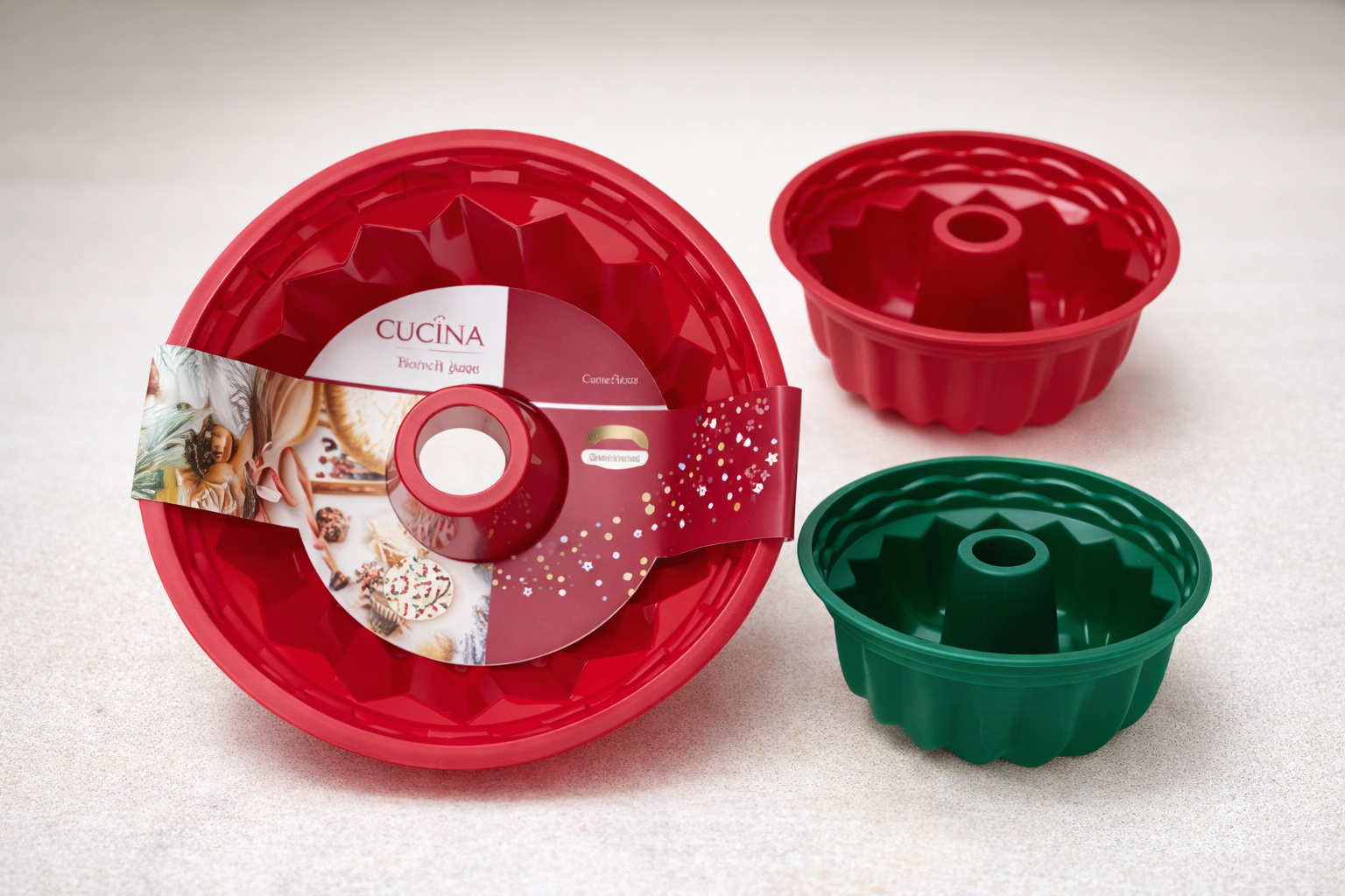 Kalup je lagan, praktičan i otporan na visoke temperature, što ga čini idealnim za pećnicu, ali i za pripremu hladnih deserata. Njegov dekorativni oblik daje kolačima lijepu formu bez dodatnog truda, dok boje unose vedrinu i sezonski ugođaj u kuhinju.