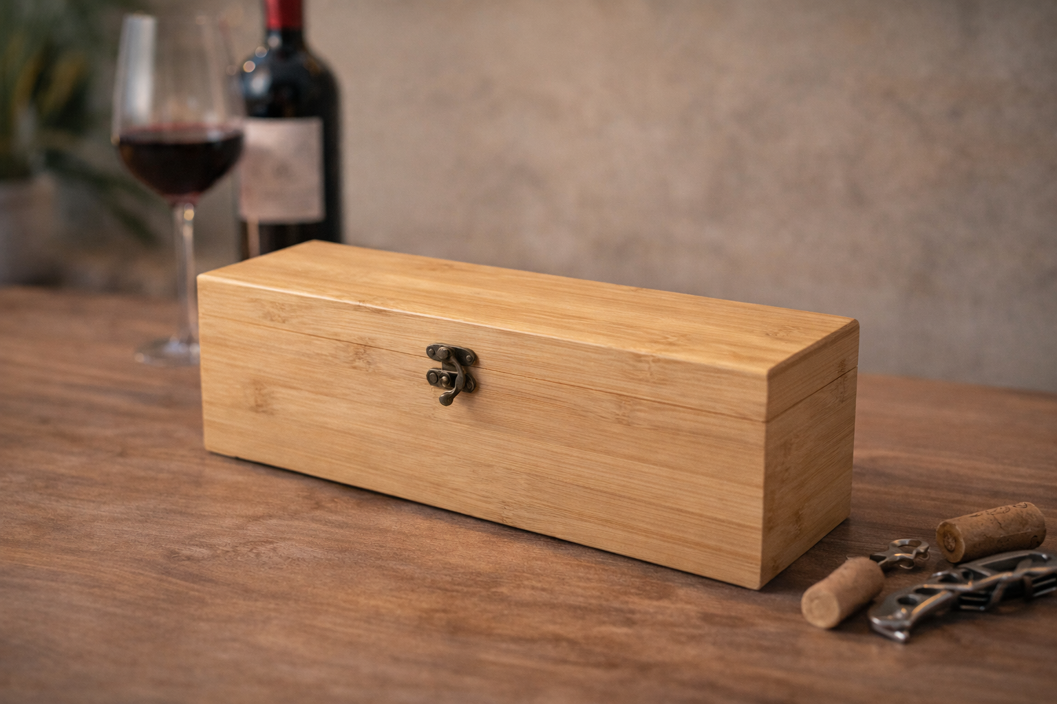 Ekskluzivni set pribora za vino u elegantnoj drvenoj kutiji, idealan za profesionalne sommeliere, vinoljupce ili kao luksuzan poklon.
