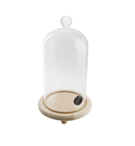 Ovaj sofisticirani dodatak sastoji se od prozirne staklene zvonaste kupole i čvrste drvene baze, idealan za serviranje i zadimljavanje pred gostima.